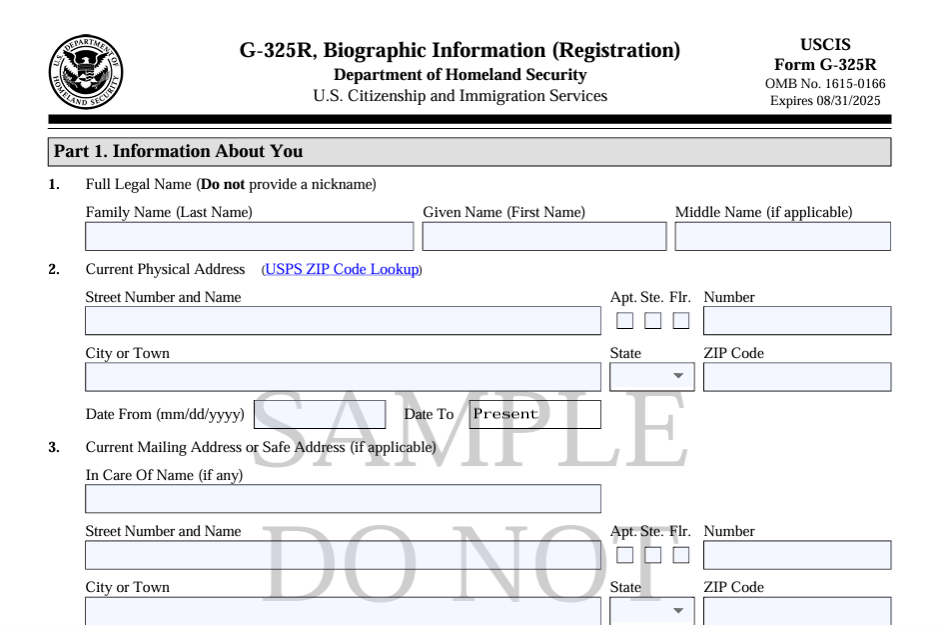 2. Заповніть та подайте форму G-325R (Biographic Information — Registration) через індивідуальний акаунт USCIS. Форма G-325R може бути подана лише власником облікового запису або, у випадку дітей, їхнім батьком чи опікуном через дитячий акаунт.